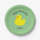 Yellow Duck Happy Birthday Green Colour Paper Plate
