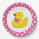Yellow Duck Pink Polka Dot Baby Shower Paper Plate