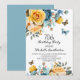 70th birthday party invitation with beautiful yellow and dusty blue roses with cream-coloured floral and butterflies. These invitations can be customised for anyone of any age. Contact me for assistance with your customisations or to request additional matching or coordinating Zazzle products for your celebration.