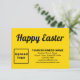 Yellow flat greeting card for Easter that you can customise by uploading your business logo, typing your business name, address, phone number and website. Customise it and give it to your customers or clients to greet them this Easter. Flat greeting card as a marketing material also to advertise your business or to promote your brand name. Customisable greeting card that you can use to build brand name awareness. Please check the appearance of the front and back sides after uploading logo and typing texts. If the appearance is pleasing to you, you can place your order now. If you need to resize and reposition the logo and texts to fit on this card or on the size that you've chosen, please adjust in the design tool. You can also change the background colour, font colour and font style in the design tool. Happy Easter! Wishing you more sales this holiday.