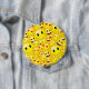 Cute happy yellow emoji cartoon symbols pattern button badge that's perfect for your emoji theme party.