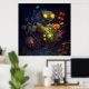 Yellow Eyes Tropical Flowers Robot Poster