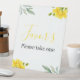 Celebrate your occasion with this yellow floral and green leaves favor pedestal sign.