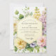 A delicate arrangement of soft yellow, lavender, and blush blooms evokes a whimsical, romantic atmosphere. Lush greenery and airy blossoms create a vintage botanical feel. The artwork suggests a natural, artful charm.