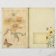 Double page journal paper in earthy tones with old post card, parchment, pretty yellow flowers and butterfly in a collage style. The back of this paper has a matching aged design.