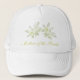 This lovely yellow floral Mother of the Bride wedding hat just glows with the joy of the celebration. It is decorated with two white daffodils. The text can be customised to suit your individual occasion. Perfect for the related rehearsal dinner, brunch or bachelorette celebrations.