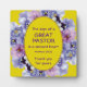 This is a simple, modern yellow floral THANK YOU PASTOR appreciation plaque with an inspirational message based on the Bible Scripture verse from Matthew 20:26, which says THE SIGN OF A GREAT PASTOR IS A SERVANT HEART, with additional text at the bottom that says THANK YOU FOR YOURS. There is a floral wreath of violets. The text for GREAT PASTOR and the THANK YOU message are both CUSTOMIZABLE, so you can change the role (eg. PRIEST, VICAR, BISHOP, FIRST LADY, etc) and the greeting/name as required. This Thank You plaque would make a great PASTOR APPRECIATION gift for your favourite pastor, clergy or spiritual leader, either at Christmas, Easter or for any special occasion to say Thank You. Part of the PASTOR APPRECIATION Collection by Berean Designs.