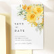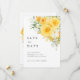 A beautiful way for couples to share their wedding date while setting the tone for an elegant yellow floral wedding celebration.