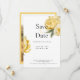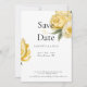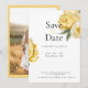 Photo save the date. Yellow and white background. Modern. Wedding Website. Yellow floral peonies.