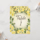 Elegant and romantic yellow floral and foliage with gold glitter wedding reception 5"x7" table number, printed on the front and back. Design one for each table. Contact me for assistance with your customisations or to request additional matching or coordinating Zazzle products for your shower or other wedding events.
