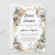 A chic white background. Decorated with white and yellow florals and a golden ribbon. Personalise and add the name of the Bride to be and details.
