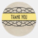 Elegant and classy Flourish Border Thank You Stickers featuring a vintage look background and a fancy swirl and lemon zest yellow stripe border. This stylish design is the perfect choice for a vintage deco chic inspired wedding. Easy to customise, simply add the personalised text of your choosing in the text field provided. Click "Customise It" to find more personalisation options.