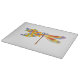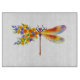 Artistically painted, floral dragonfly in contrasting orange and purple with yellow, bright, blooming California poppy and blue wildflowers on white background.