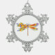 Yellow Flower Dragonfly Snowflake Pewter Christmas Ornament