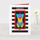 "Shalom" tops this stylish flower adorning a colourful Star of David, all superimposed over bold black and white stripes. Interior card bordered and coordinated for your writing pleasure. Enjoy! ~ karyn
