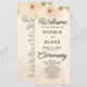 The text within the program is presented in classic black and grey, using a simple block font that ensures clarity and readability. These neutral tones provide a timeless canvas for your ceremony details, ensuring that your guests can effortlessly follow the proceedings. To infuse an element of enchantment and grace, the words "Welcome," "Ceremony," and "Wedding Party" are delicately rendered in a decorative script font. This ornate script font imparts a sense of whimsy and romance, adding a delightful charm to your wedding program.
