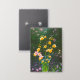 A serene and sun-drenched scene of bright yellow and pink wildflowers in a glass jar, placed in a lush, green meadow. The background is softly blurred with a gentle, misty light filtering through the trees, creating a peaceful and romantic atmosphere.