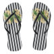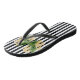 Yellow flowers on black and white stripes flip flops