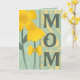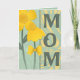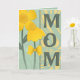 Celebrate the most important woman in your life with a card as bright and beautiful as she is. This modern, hand drawn artistically designed greeting card has bold, vertical typography spelling out "MOM" against a cheerful palette of sunny yellow and soft sage green. It's perfect for a Mother’s Day sentiment, a heartfelt way to say "thank you" for everything she does, or simply when you just want to send a smile across the miles. The charming illustration of layered yellow flowers, complete with a delicate bow detail and textured background, offers a sophisticated yet warm aesthetic that any mother will cherish.