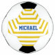 Yellow fun stripes with customisable name soccer ball. A great gift for the soccer (or football) fan in your life!