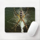Photography of a Female Yellow Garden spider on spider web on Mouse Pad. Yellow garden #spider also known as black and yellow garden spider, golden garden spider, writing spider, zigzag spider, corn spider, or McKinley spider.