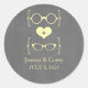 Quirky and chic Geeky Glasses Chalkboard Wedding Stickers in yellow featuring a cute heart flanked by two pairs of nerdy eyeglasses, a manly pair and a girly pair representing the groom and bride on a chalkboard look background. These offbeat wedding stickers are perfect for your geek wedding! Easy to customise, simply add the details of your wedding in the text fields provided. Click on the "Customise It" button to find additional personalisation options.
