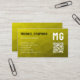 Yellow geometric mesh pattern QR code Monogram Business Card