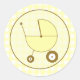 A sticker featuring a light yellow baby carriage inside a circle shaped frame. Yellow gingham background. Look for matching items such as invitations in the "Baby Shop" section of The Pink Schoolhouse Store.