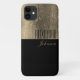 Metallic, old gold, rough texture in combination with black and with custom name. Simple, modern, contemporary, luxury iPhone case.