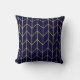 Yellow Gold Chevron Navy Blue Modern Chic Cushion