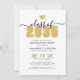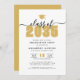A sleek and modern graduation party invitation featuring “Class of Year” in large, bold text at the top with a customizable graduation cap icon above. Below the year, all event details are neatly displayed in clean, modern fonts, including the graduate’s name, date, time, and location of the celebration.