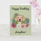 Yellow Golden Retriever Colourful Flowers Birthday Card