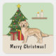 Yellow Golden Retriever Dog With Christmas Tree Square Sticker