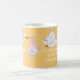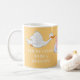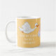Cute yellow mug with a stork carrying a baby and text that says "You're going to be a grandpa!" Text is fully customisable, so this can be a pregnancy announcement for anyone you choose.