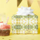 Watercolor design pattern in green, yellows and white with a touch of burgundy. The happy birthday text can be personalised to any message, or text is removable.