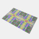 Colourful geometric shapes pattern, custom made artwork in prominent shades of yellow, green, blue, purple and with additional shades of burgundy, silver, grey, pink, gold. Elegant trendy digital art design.
