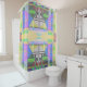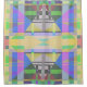 Colourful geometric shapes pattern, custom made artwork in prominent shades of yellow, green, blue, purple and with additional shades of burgundy, silver, grey, pink, gold. Elegant trendy digital art design.