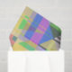 Colourful geometric shapes pattern, custom made artwork in prominent shades of yellow, green, blue, purple and with additional shades of burgundy, silver, grey, pink, gold. Elegant trendy digital art design.