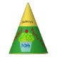 Personalised 10th Birthday Party Vanilla Cupcake Balloons Hats. Personalise with your age and name. Celebrate your birthday for any age for boys or girls with these festive yummy green yellow frosting with sprinkles vanilla cupcake in light blue pleated wrapper with red cherry on top party hats. Birthday Party Fun is written in red text. Colourful flying balloons are on the back of the hats in red, green, blue, orange, yellow. Party hats have a yellow and green background for a two tone look. Fun birthday party celebration hats for anyone. Original Graphic Artwork design Copyright © 2013, 2016 TamiraZDesigns. All Rights Reserved. Visit my store for more original items: www.zazzle.com/tamirazdesigns*