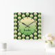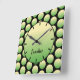 Yellow Green Dots Black Script Name Typography Square Wall Clock
