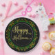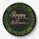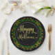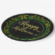 Yellow Green Gold Glitter On Black Happy Halloween Paper Plate