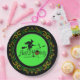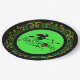 Yellow Green Happy Halloween Witch And Bats Paper Plate