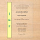 Monogrammed Initials in yellow against green geometric border on the side. Tropical beach destination wedding vibe. Original Design © TamiraZDesigns.