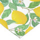 Decorative design of a pattern of yellow juicy lemons on branches with green leaves and delicate white flowers on a white background.
