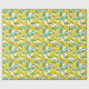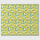 Decorative design of a pattern of yellow juicy lemons on branches with green leaves and delicate white flowers on a white background.
