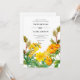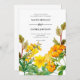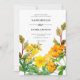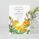 A wedding invitation made of cheerful wild flowers in light yellow and bright green.