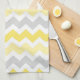 Modern and elegant bright canary yellow, grey and white retro chevron zigzags stripes vintage pattern kitchen towel, customisable with your own text or photo, a unique and elegant addition to your kitchen decor.