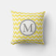 Elegant and modern bright lemon yellow, grey and white chevron zigzags stripes pattern custom monogram decorative throw pillow. Fully customisable, add your own initial for a truly unique home decor item.