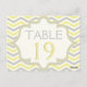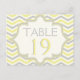 Yellow grey chevron zigzag wedding table number postcard