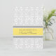 Bridal shower invitations in elegant bright lemon yellow, grey and white classic floral damask vintage pattern, chic and feminine, customisable with your shower details. Also available in thank you cards and invitations for the bridal party.